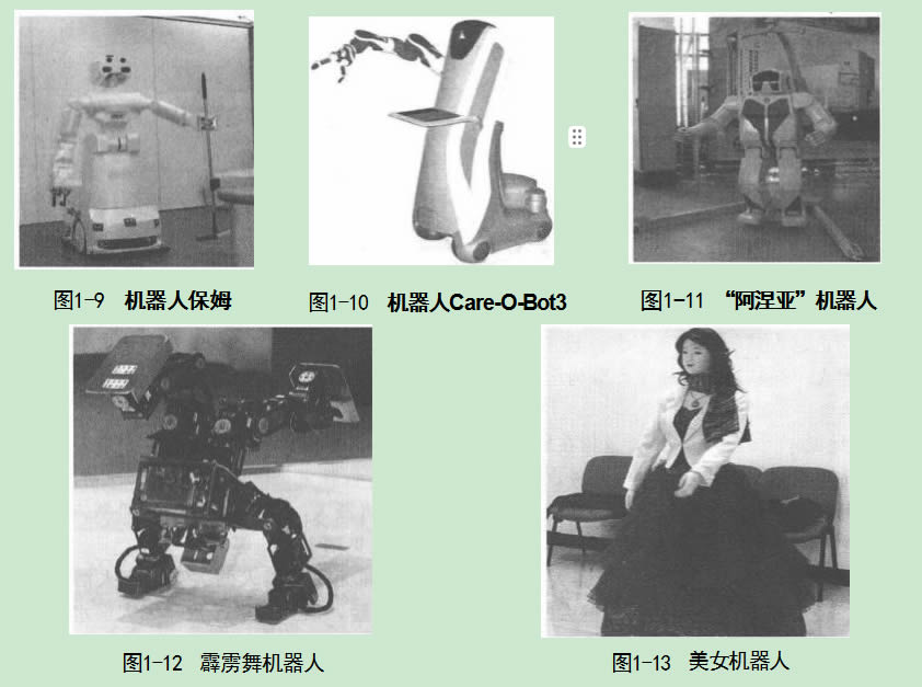 圖1-11所示機(jī)器人是俄羅斯利用“新紀(jì)元”公司許多d特研究研制的人形機(jī)器人“阿 涅亞”,這款機(jī)器人是一種能夠雙腳行走,還能與人對話的服務(wù)機(jī)器人,它擁有世界先進(jìn)的 機(jī)械結(jié)構(gòu)和程序保障系統(tǒng)。